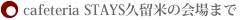 右に曲がって頂きましたら、右手に牛丼の『すき家』様があり、50mほど直進しましたら正面にレンガの建物が見えてきます。その建物の1階がcafeteria STAYS 久留米となります。